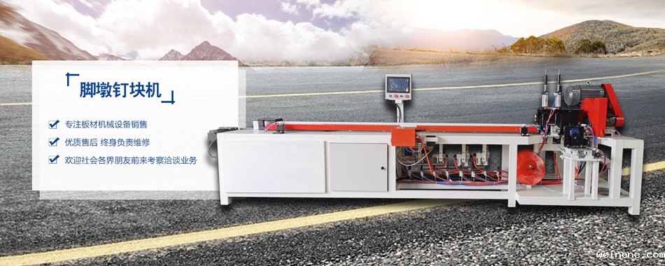 托盘脚墩机主要用来生产木屑挤出木块,该产品主要用来代替传统木托盘所用的原木脚墩。该脚墩机利用废弃木材、木屑、木刨花作为原料,经烘干机干燥,在和胶水混合均匀后,一次热压成型挤出胶墩,具有不掉屑,防水性好,着钉力强等特点。